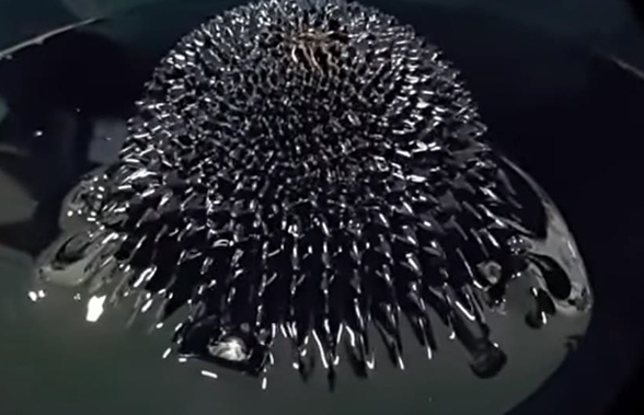 자성 유체는 자성을 띄는 미세입자를 액체에 분산시킨 콜로이드(Colloid) 형태의 분산액으로, 외부에 자기장을 가하면 분산액이 유동성을 갖습니다.